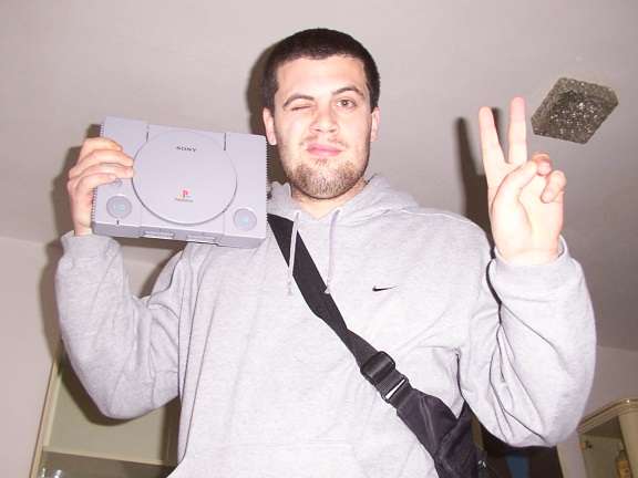 Un joypad blu, maledettissimo joypad. Le sue scariche maligne devono aver fuso la Playstation di Angelo, che perņ in qualche modo č riuscito a procurarsene un'altra. Angelo, il Playstation dipendente!