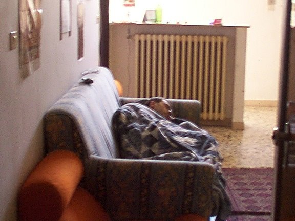 4 febbraio 2002 Andrea 'Della' sul divano Un ospite illustre sorpreso sul grandioso divano del Grande Sifone