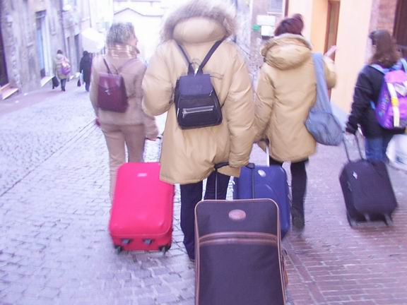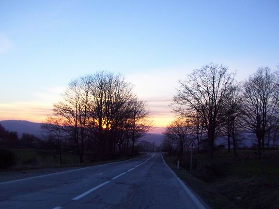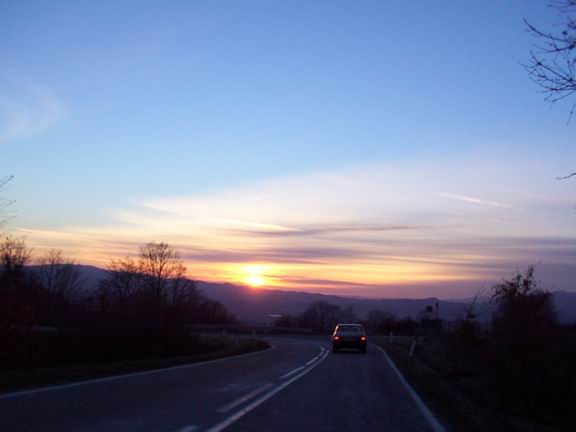Gita fuori porta per Luca, Tony e Filippo. Destinazione un agriturismo in Toscana, la Principina, in occasione del raduno del BARMARIO. In partenza con i ragazzi c'è anche la vicina di casa, Placida, da salutare ad Arezzo. Il viaggio procede per il meglio, attraverso le stradine di montagna delle Marche, dell'Umbria e della Toscana. Prati verdi, pascoli infiniti, montagne aspre, ancora ricoperte dalla neve...e in serata, un cielo punteggiato da mille stelle e una luna che rischiara la notte. E cosa c'è di meglio se non un bel bagno di mezzanotte di fine febbraio? Dopo la tappa ad Arezzo i ragazzi si dirigono alle terme di Saturnia, con un'acqua garantita alla temperatura stabile di 37 gradi...ma fuori!? Fuori si gela, ma il bagno sotto le cascate è un'esperienza incredibile! Puzzolenti di zolfo i tre si dirigono verso l'agriturismo per incontrarsi con il resto della ciurma: amici proveniente dal resto dell'Italia decisi a trascorrere un fine settimana dedicato al divertimento. E così tra partitelle a pallone, tramonti fantastici sul Tirreno, grigliate di carne e tante chiacchierate, si riparte domenica, con altre tappe da percorrere. Le campagne toscane, i vigneti, Pienza, il vento, il tramonto sul lago Trasimeno, la porchetta di Umbertide...e finalmente Urbino...un week-end da leoni, ma il finale di Luca è un po' da dimenticare: 39 fisso per tutta la settimana seguente!!! ...ma ne è veramente valsa la pena!!! |