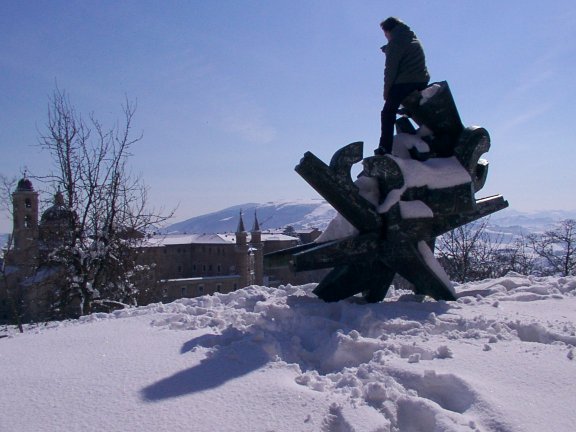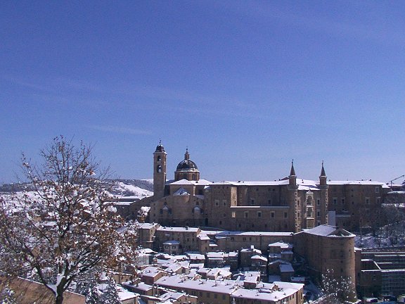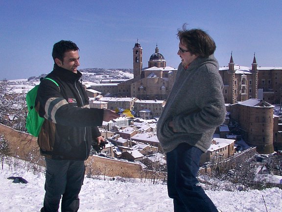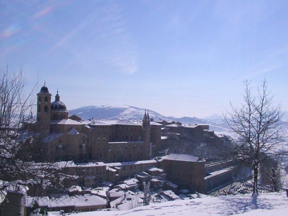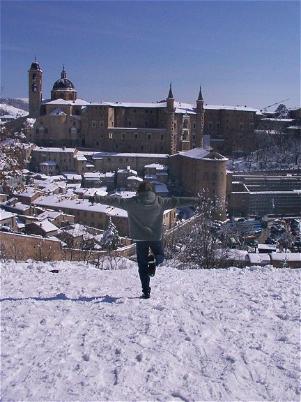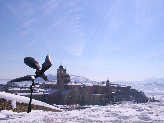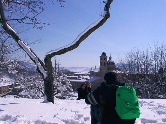 spettacoloso panorama su tutto il paesello. Sembra di passeggiare in una località di montagna, grazie all'effetto della neve tutt'intorno. Ma siamo ad Urbino!