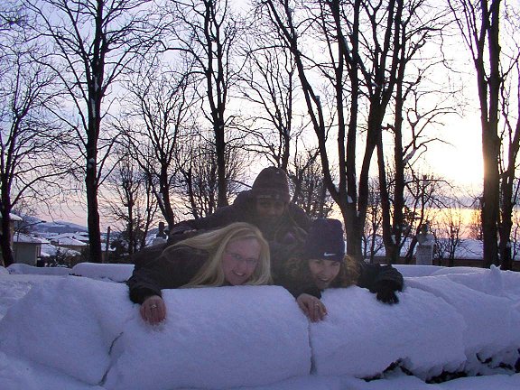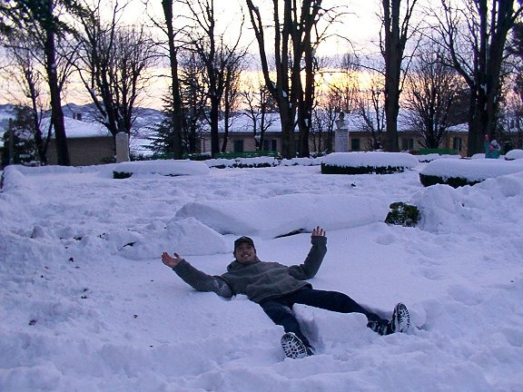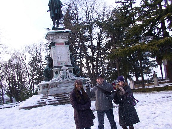 anche la bella notizia di non aver lezione, e la cosa migliore è divertirsi con Solange, Maurizia ed Elisa, scattando qualche fotografia sulla neve, insieme a Raffaello, mentre ad ovest si prepara