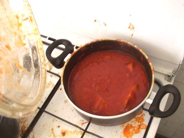 per un po' ed aggiungere la passata di pomodoro. Far cucinare a fuoco lento, mescolando.