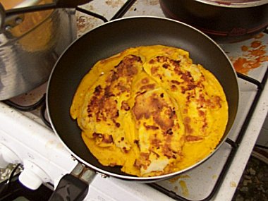 Luca si č invece cimentato con dei petti di pollo mooooolto nutrienti. Immergendoli prima in una pastella di uova, farina e latte, e poi friggendoli con la margarina. A fine cottura viene