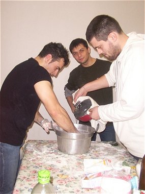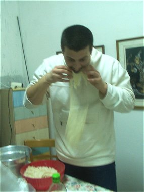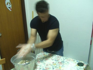 mozzarella, lievito e farina...e soprattutto la sua abilità nell'impastare diverse teglie di pizza che verranno spazzolate ancora bollenti. Altro che Salvo del Grande Fratello.