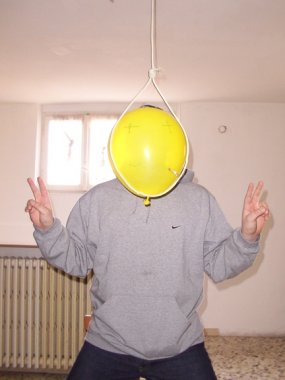 Una corda, un palloncino giallo, un mozzicone di sigaretta, ed ecco che Luca, in attesa del risveglio degli altri, prepara il simpatico scherzetto, anche per evadere un momento dallo studio. Al risveglio Angelo fa "ho una vaga impressione di chi possa essere stato".