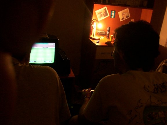 di calcio che si diffonde dalla TV. Ma come faranno? Saranno alieni? No, soltanto Amleto ed Angelo, campioni di Winning.