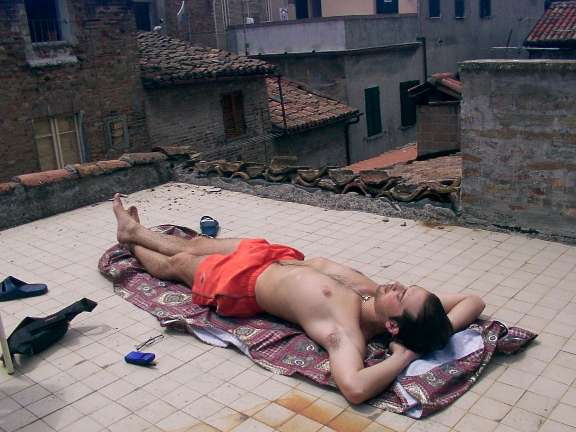 Auto d'epoca, motori che rimbombano tra le stradine e tanto stress accumulato, riportano ben presto Luca nella tranquillità di Via del Leone, in terrazza, sotto il sole, mentre