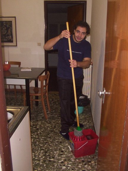 In un'ora se il lavoro non manca e le braccia ci sono, si puņ fare un ottimo lavoro. Scale, salone, corridoio, cucina, bagni...ripuliti dall'opera congiunta