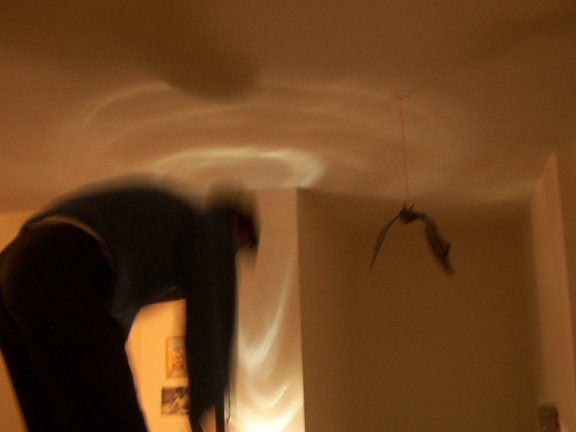 di un rotolo di carta ingienica, un po' di cartone, colla, una busta dell'immondizia, nastro adesivo e colla, nasce il pipistrello 'MaZZini', che spaventerà i numerosi ospiti