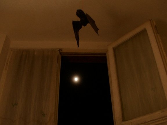 28 ottobre 2001 MaZZini e la luna Luna piena lassł e il pipistrello MaZZini volteggia nel salone, tutto elettrizzato per l'avvicinarsi della notte delle streghe!