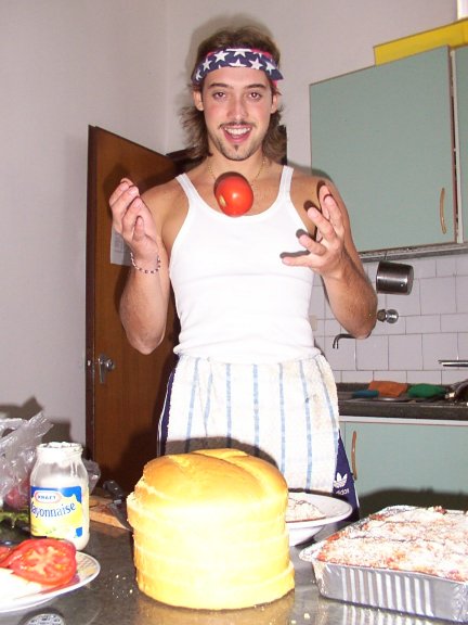 30 settembre 2001 I preparativi del festone Luca al lavoro in cucina per la creazione del buffet per la sua festa